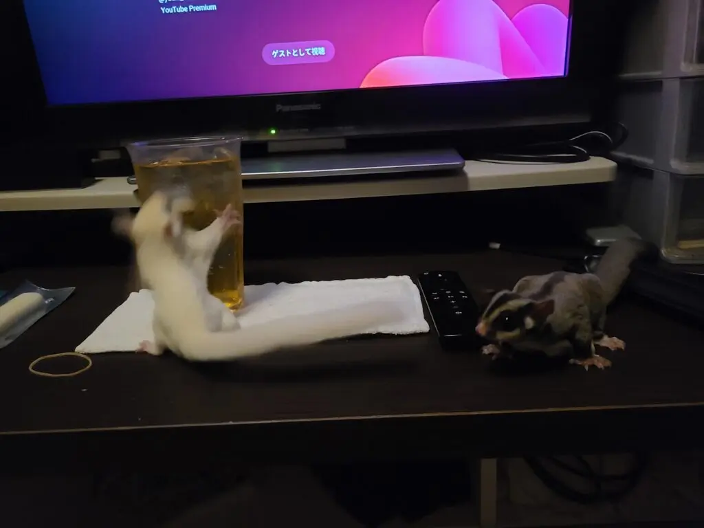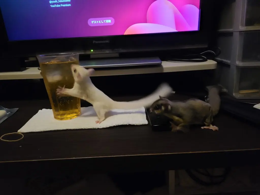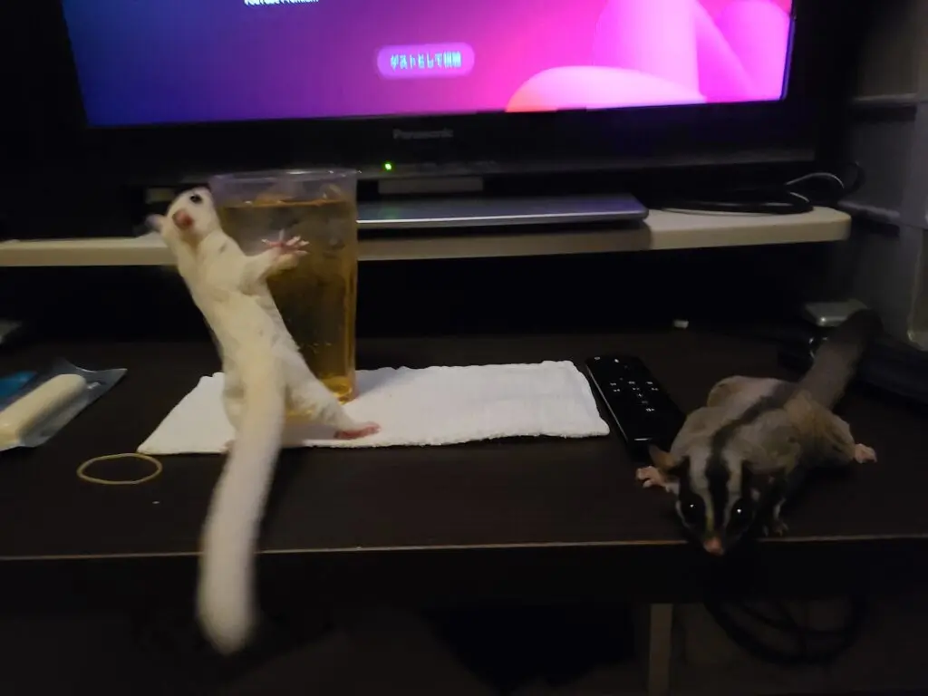 フクロモモンガのふくももさんとスピカさんは、とても部屋んぽが好きです。