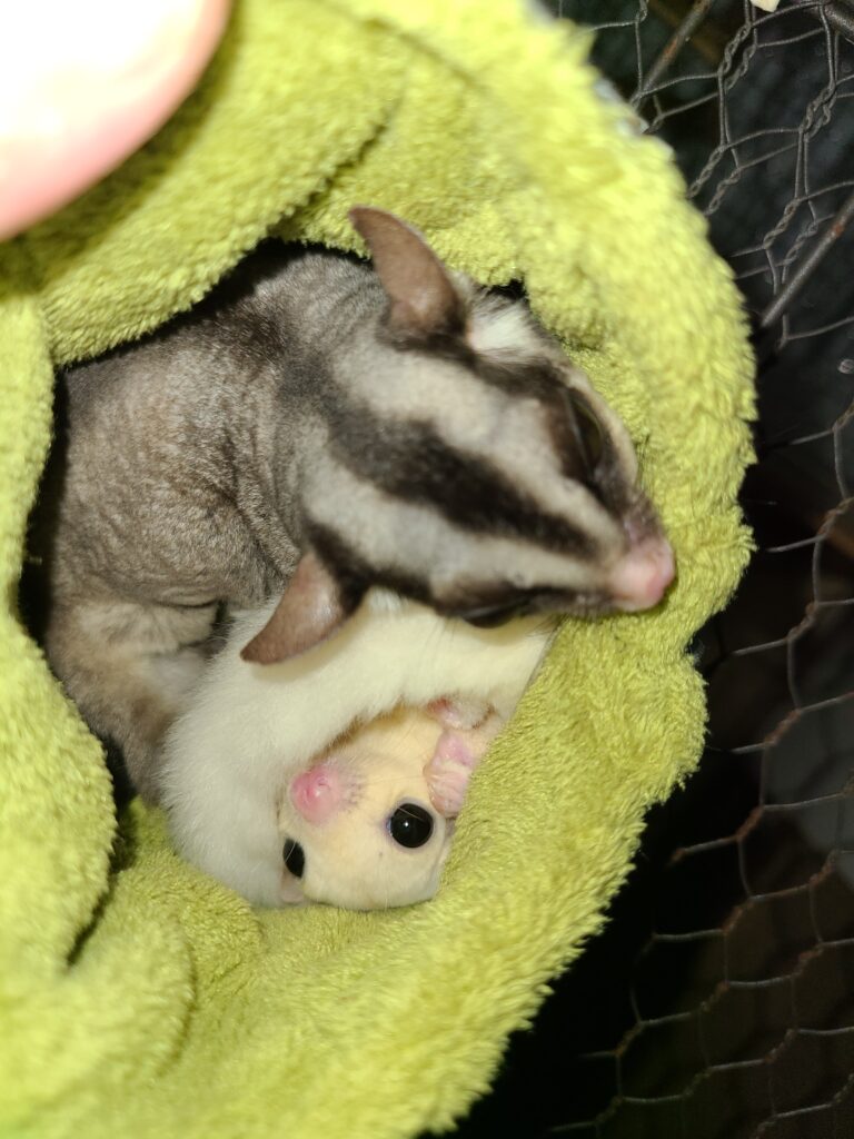 スピカさんは双子の♂のフクロモモンガでも最初は警戒心バリバリで、喧嘩してたのですが。ふくももさんとは相性良いみたいですね。