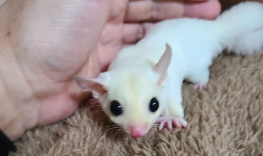 メスとメスの組み合わせですが。アニマルタッチさんから色々教えてもらいましたが歳が離れてても大丈夫みたいです。このリューシスティックのフクロモモンガをお迎えして、すぐにはふくももと一緒にはできませんが、徐々にお互いを認識させてあげればふくももの性格も変わるかもしれないそうです。